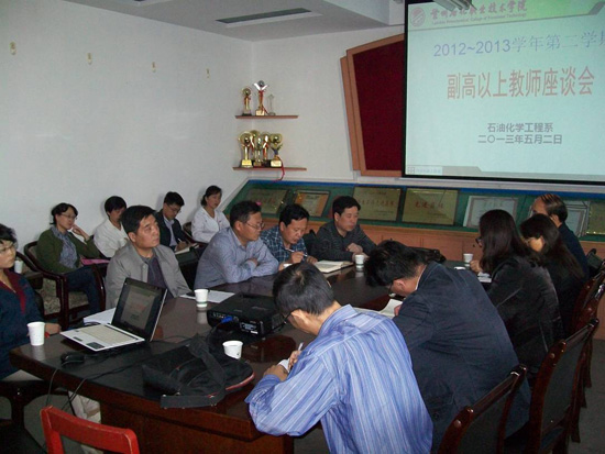 5月2日,石化系组织了系副教授以上职称教师和教研室主任的座谈会。石化系副主任李薇首先向与会教师介绍了本学期召开的学生座谈会的情况,汇报了学生座谈会上反映的目前教学工作中存在的问题及学生的学习需求。