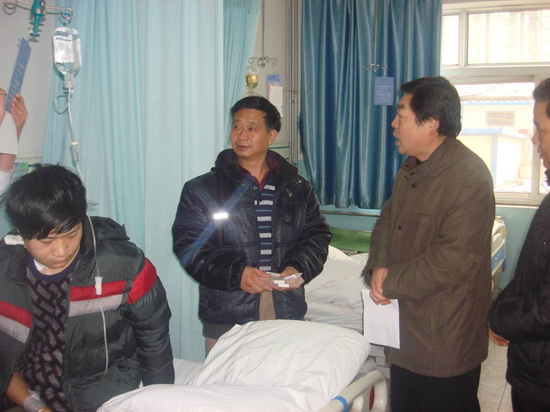 命运无情,人间有爱;一方有难,八方支援。12月21日,石油化学工程系党总支书记呼小洲、系辅导员及石化105班学生代表到甘肃省兰大二院看望慰问了身患重病的本帅同学及其家人,将全系师生共同捐助的21945元善款送到本帅父亲的手中,并向患者及其家属表示深切的慰问和良好的祝愿。