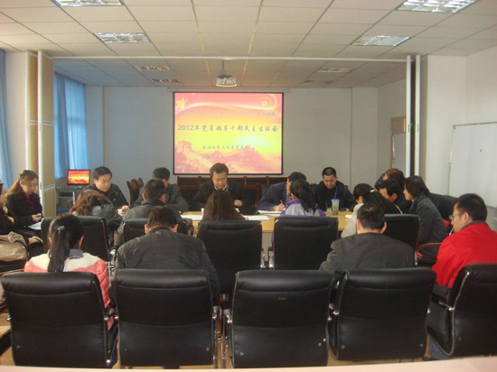 根据学院党委《关于开好2012年学院党员领导干部专题民主生活会的通知》要求,11月30日下午,石油化学工程系在深入学习调研、广泛交心谈心,认真听取意见、建议的基础上,在东区教师备课中心召开了以“学习贯彻党的十八大精神,加强领导干部思想和作风建设”为主题的党员领导干部专题民主生活会。学院院长张方明、纪委副书记陈效英、组织部张文和老师、系领导班子成员、教工党员代表、民主党派、无党派代表参加了会议。会议由石化系党总支书记呼小洲主持。