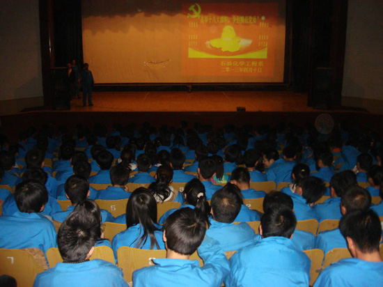 | 为了提高石油化学工程系广大学生对“十八大、两会精神”的深刻认识与了解,贯彻弘扬“美丽中国我的梦”主题思想,4月10日晚八点半,石油化学工程系在学院西区礼堂组织党员干部学习“十八大、两会精神”宣扬“美丽中国我的梦”的主题活动。