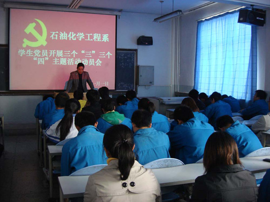 为认真贯彻落实学院《关于开展三个“三”、三个“四”主题活动的通知》,强化学生道德修养,培养学生良好的学习生活习惯,提高学生自我教育、自我管理能力。11月1日,石油化学工程系在化工楼201教室召开了三个“三”、三个“四”主题活动学生党员动员大会。会议由石化系辅导员李胜泥老师主持。