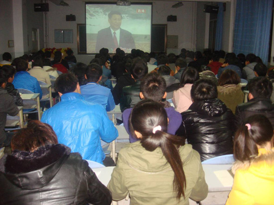 会上,在系团总支学生干部的组织下,与会人员共同观看了习近平在十八届政治局常委在与中外记者见面会上的视频,学习了习近平总书记在与中外记者见面会上的重要讲话,观看了十八届中共中央政治局部署学习宣传贯彻十八大精神的视频。视频观看结束后,系团总支书记认真传达了《中共兰州石化职业技术学院委员会关于学习宣传贯彻党的十八大精神的意见》及石化系学习宣传十八的工作要求,介绍了学习、宣传、贯彻十八大精神的意义、学习内容、学习任务及自己学习十八大精神的心得体会,带领大家一同学习了胡锦涛在党的十八大上做的工作报告摘要,并要求全系团学干部要联系实际、争当先锋,努力培养社会责任感和创新精神,为建设美丽中国做出贡献,以奋发有为的精神面貌和积极进取的实际行动来认真学习好、领会好、贯彻好党的十八大精神。