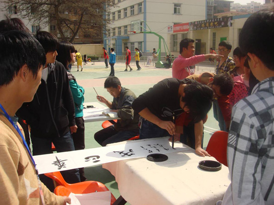 | 书画是一种文化的传承,也是一种抒发个人情感的媒介。为了给全院师生提供一次文化盛宴,丰富校园文化生活,加强校园文化建设,激发学生的审美情趣,展现大学生积极向上、锐意进取、热爱祖国、歌颂祖国的精神风貌,以积极的姿态迎接“中国梦”。近日,石油化学工程系联合学院学生会宣传部、大学生书画社团在西区特步篮球场联合举办“尊廉崇洁”杯书画大赛。学院各系及石化系数十名选手积极参加此次大赛。