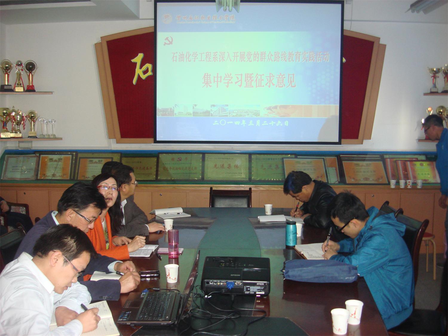 为深入贯彻落实学院关于开展党的群众路线教育实践活动的部署和要求,扎实推进我系群众路线教育实践活动工作,3月26日下午,石油化学工程系在化工楼三楼会议室举行了党的群众路线教育实践活动集中学习会。石化系领导、教工党员、学生党员参加了学习。
