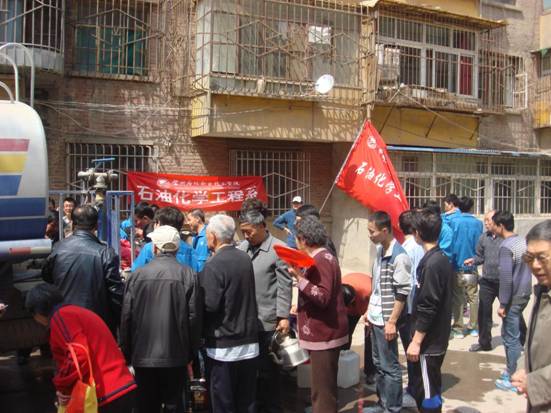 为深入开展党的群众路线教育实践活动,积极响应学院“积极组织、全面动员、全员参与保证学生用水”的精神,在学生中开展“保障供水、节约用水”的活动,缓解学生、家属区用水困难,4月13日,石油化学工程系成立了“供水应急保障小分队”,系领导亲自组织指导小分队工作,召开了小分队成立动员会,明确了小分队“那里需要就到那里,那里有困难就到那里”服务宗旨;鼓舞小分队成员服务学生、服务群众,积极参与义工献爱心活动。学生干部、党员、入党积极分子本着“时刻准备、随时集中、一有困难、立即出动”的精神,积极投身于志愿者服务活动之中。4月12日晚上供水应急保障小分队齐聚实华公寓门口,耐心等待至晚上12点,将800多箱瓶装水卸车入库、组织有序的发放到每个学生手中。4月13日组织小分队前往家属区帮助老人、儿童接水送水,一些同学主动上前将老人的家用器皿接来盛满水送入老人家中,同学们组织秩序井然、分工明确,很快将一车水运送到群众家中,整个志愿现场气氛和谐,充满温情,从老人的神情中可以看到他们内心的喜悦与感激之情;从同学们的举动中看到了“团结互助、吃苦耐劳”精神品质,展现了当代大学生“献爱心、亲老人、助人乐”的精神风采,得到了街区市民的一致好评。