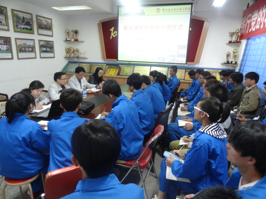 紧接着,于5月11日晚7点在化工楼三楼会议室举行了开班仪式。会上,首先由系主任冯文成教授对本次进入到培养班的同学表示了恭喜和欢迎,并明确指出了当前我系成立拔尖学生培养班的背景和任务要求。冯主任通过介绍职业院校以进行技术性教育为主、以技术应用能力的培养为主线,主要培养学生应用知识的能力,以进行具体的工作任务的特点,向大家介绍了我系拔尖学生培养计划的三个层面。随之,冯主任要求所有的入选学生,要胸怀大志,超越局限,升格梦想,及时关注并学习党的先进理论,用社会主义核心价值观严格要求自己并不断提升自己,用中国梦扩充自己的学习生活内容,熔铸未来石油化工人的辉煌。最后他提醒拔尖培养班的学生要时刻谨记“要学会做事,先学会做人”的深刻哲理,因为只有在做事的过程中才能体现做人的品位。学会“舍得”,先舍而后得,只有先辛勤付出,才会得到更多辉煌。希望培养班的拔尖学生放下包袱,树立勇于成才的坚定信念,认真完成石化系拔尖学生的神圣使命。
