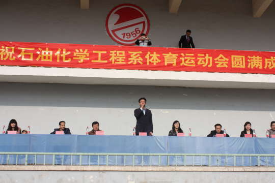 随着国歌、校歌在天空中激昂荡起,石油化学工程党总支副书记唐蓉萍为大会致了激动人心、深受鼓舞的开幕辞,之后,系主任冯文成教授庄严宣布运动会正式开幕,随之,富有魅力的啦啦操在体育场中央闪亮登场,尽情展示着石化学子传承铁人精神、不断开拓创新的优秀品质。