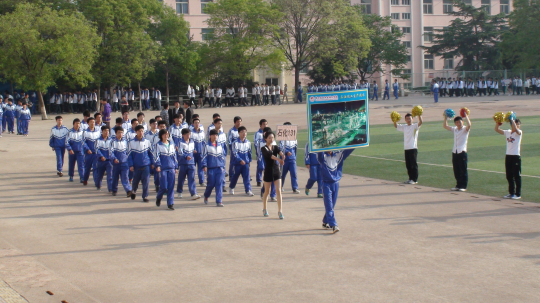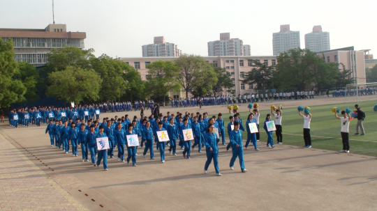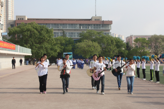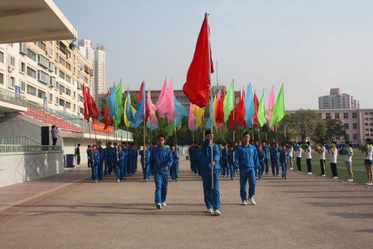 晨曦微露,在风中招展的彩旗队、气宇轩昂的男子方阵、精神抖擞女子表演方阵铿锵有力的带领下,秉承培养和教育广大青年团员的使命的团总支、具有“团结、奉献、求真、务实”的工作作风的学生会干部方队、迎合校园文化大发展,传达学生精神文化需求、革新思维观念的优秀载体的朝露文学社方队、本着“普及推广民族励志音乐,向广大音乐爱好者宣传中国的合唱艺术的大学生合唱团方队缓缓走来,随之,13级各班学生方队迈着矫健的步伐也依次进场,展现着各自的魅力风采,展现着各自创新特色。
