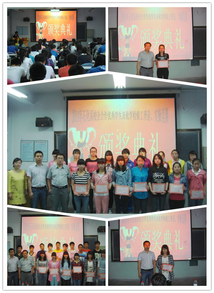 为了表彰我系同学在与校企合作项目、化学检验工理论知识、实操竞赛取得的优异成绩,同时培育学生的科学创造、创新能力,为我系营造良好的学习氛围。5月21日晚七点半,石油化学工程系于化工楼201教室举行“2014年校企合作优秀学生及化学检验工理论、实操竞赛”颁奖仪式。出席本次颁奖仪式的有石油化学工程系党总支副书记夏德强、校企项目合作指导老师颉林、辅导员史晓庆、系团总支学生会干部及各项目获奖同学共计100余人。