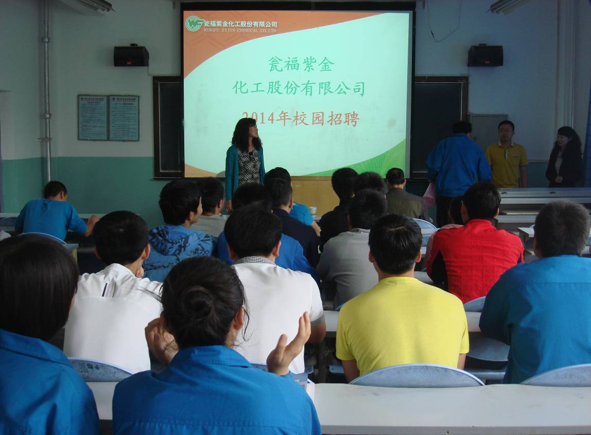 报告会上,企业领导首先为同学们介绍了瓮福紫金化工股份有限公司的生产规模,公司遵旨,公司优势,公司建设情况,发展大记事,信息化工作情况,人员情况,薪酬方面,社保福利,员工培训,晋升机制 人才鼓励,招聘计划等情况,并向同学们展示了公司鸟瞰图、平面图,讲述了公司的地理位置及周边环境,公司配套公用设施等。同时,同时公司领导现场对同学们提出的问题进行了详尽的解答。据悉瓮福紫金化工股份有限公司将对化工工艺、化工机械、工业分析与检验专业毕业生进行招聘。