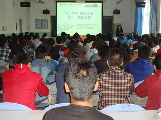 为进一步做好2015届毕业生就业推荐工作,帮助目前仍未落实就业单位的同学找到满意的工作,更为9月23日宁波市政府组织的石化企业招聘团来我院招聘毕业生奠定基础,石油化学工程系于9月22日在化工楼201教室开展“知己知彼,精心准备,总有一款适合你”就业指导报告会。石化系党总支副书记唐蓉萍担任此次主讲,系就业辅导员、2015届各班未就业的部分学生参加了此次报告会。
