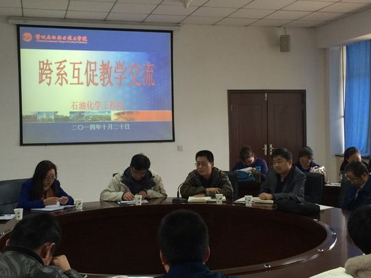 为了进一步深化教学改革,加强教学团队建设,寻求专业发展新思路,开辟新途径,推进教研活动工作的有效开展,根据学院安排,2014年10月20日石油化学工程系组织开展了本学期跨系互促教研活动。本次教研活动围绕《工业仪表自动化》、《化工设备基础》这两门课的内容开展交流,石化系邀请电子电气工程丁炜老师、机械工程系王宇飞老师与参与交流,教务处领导、石化系全体教师参加了此次活动。