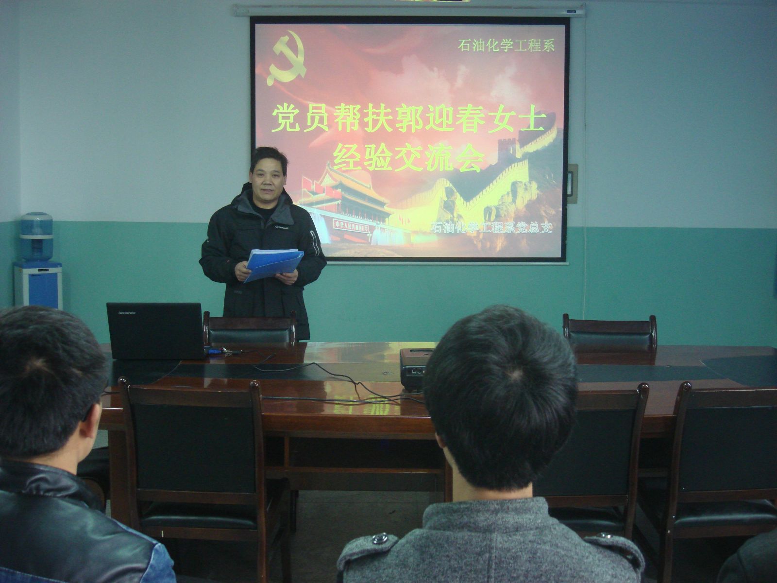 为了弘扬党员无私奉献的精神,强化石化系党员义工帮扶活动。石油化学工程系于11月11日召开党员帮扶郭迎春女士经验交流会。辅导员及参加帮扶郭迎春女士的47名预备党员参加了经验交流会。