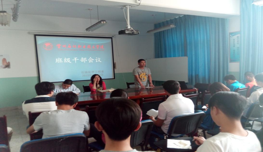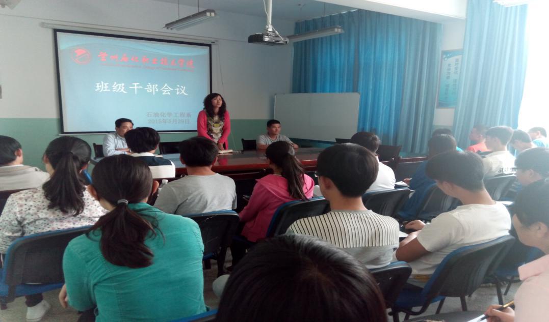 会议伊始,石化系辅导员李胜泥通报了石化系近期早操、晚自习、公寓管理等方面存在的问题,对学生干部的行为表现做了讲评,要求各级干部以身作则做好干部表率作用,认真履行干部职责,做好班级管理工作。之后,系党总支副书记唐蓉萍就“如何当一名学生干部”做了耐心细致的讲解。一是明确了班干部在班级管理者地位,如何引导学生增强学习风气,如何秉持公正、公平,认真履行班级管理职责。二是用合理的处事方法,积极为同学们服务,做好老师和同学们之间的桥梁作用。三是用良好的精神风貌迎接就业。同时,各干部要切实反映班级问题,针对管理问题要做到“两查”,力争做到使同学们理念认同,行动服从。最后,石化系12级班长郭超鹏同学进行了班级管理经验交流,他结合自身管理经验建议各班干部提高个人素质,处事公正、透明,加强和同学们的交流,以“己所不欲勿施于人的态度,积极为同学们服务。