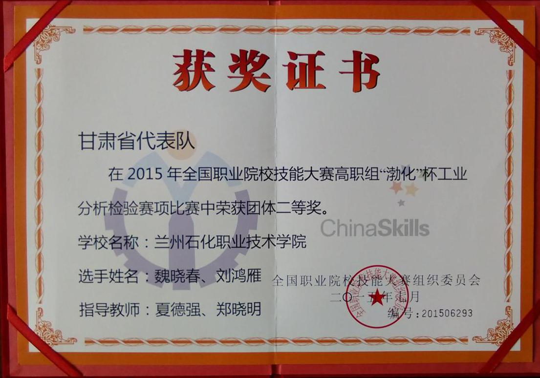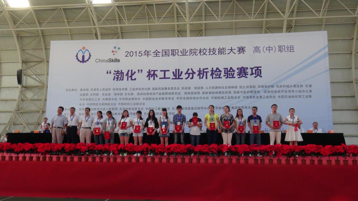 7月1日,2015年全国职业院校技能大赛“渤化” 杯工业分析检验赛项在天津渤海职业技术学院胜利开幕,大赛是由教育部主办,天津渤海职业技术学院承办的国家级赛项。竞赛由三个模块组成,分别为专业理论知识与气相色谱-质谱联用仿真操作、化学分析实操和仪器分析实操。此次大赛共有来自全国32个省市的113支参赛队的226名选手参加,其中63支代表队的126名选手参加了高职组的竞赛角逐。我院和兰州职业技术学院组成甘肃省代表队参加了此次大赛。本届大赛高职组设团体一等奖(参赛院校队数的10%,6支代表队),二等奖(参赛院校队数的20%,12支代表队),三等奖(参赛院校队数的30%,18支代表队)。