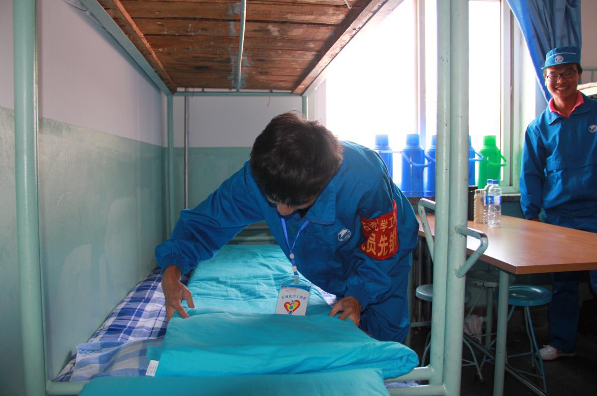 活动中,一是“党员先锋岗”深入新生宿舍,了解大家的学习和生活状况,为同学们提供力所能及的帮助。党员们耐心的手把手教新生叠被子,提醒他们该注意的问题和一些细节,让他们不再为叠不好被子烦恼,使他们全身心的投入到军训工作中去,完成军训任务。二是组织党员在校园内除草捡垃圾,还校园一方净土,给新生一丝温馨。三是开展为军训教官、新生端一杯茶,送一壶水活动,送去温暖、送去关心,让教官们感受浓浓的石化情,彰显石化党员风采。
