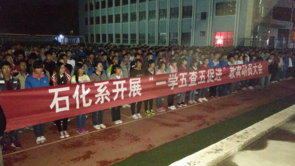 为实现学院2015年持续推进学生教育管理服务,加强平安校园建设的总体目标,进一步加强学生思想政治教育、学生日常管理及各项服务工作,充分发挥各级学生工作人员的主观能动性。根据学院工作安排,石油化学工程系将开展为期一个月的“一学五查五促进”主题教育活动。