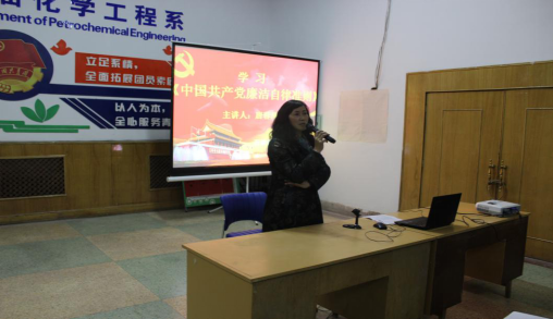 为进一步夯实“三严三实”教育基础,充分发挥学生党员的先进模范作用,树立大学生党员良好形象,石油化学工程系于11月19日晚组织学生党员学习了《中国共产党廉洁自律准则》,石化系党总支副书记唐蓉萍担任此次主讲。