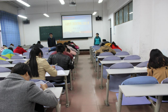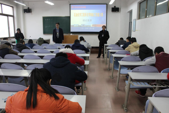 为了加强石化系学生的专业知识学习,巩固专业理论知识,切实提高化学检验技能水平,也为全国化学检验工技能大赛选拔参赛队员,3月10日晚,石油化学工程系在综合楼举办了化学检验工技能大赛理论考试,石化系14级各专业的近150名同学参加了本次考试,系领导逐一巡视了考场。