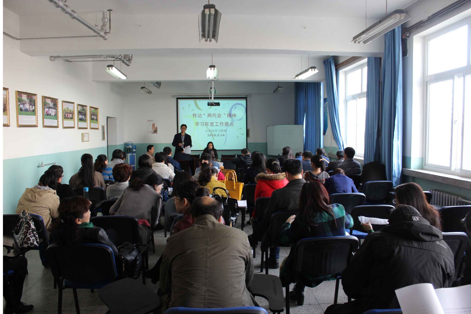 首先,冯文成带领全体教师学习了院长高溥在大会上所做的题为《统一思想、明确目标、坚定信念、扎实工作,奋力推动学院“十三五”发展开好局、起好步》的工作报告。随之,宣传了学院2016年的工作安排的十项重点工作:一是抓党建思政,切实加强党委统领;二是抓创新发展,重点深化体制机制改革;三是抓质量内涵,不断提高教育教学水平;四是抓教育管理,全面服务学生成长成才;五是抓校企合作,持续深化产教研深度融合;六是抓应用创新,不断提升教科研水平;七是抓精细严实,着力提高科学管理水平;八是抓基础建设,持续改善办学条件;九是抓精准扶贫,扎实推进双联工作;十是抓统筹协调,全面做好其他各项工作。