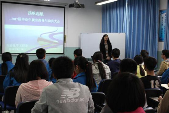 为做好2017届毕业生就业工作,帮助毕业生认清就业形势、做好就业各项准备,近日,石油化学工程系在石化楼会议室召开了“扬帆起航”2017届毕业生就业指导与动员大会。石化系领导、辅导员、14级各班班干部共80余人参加了此次会议。