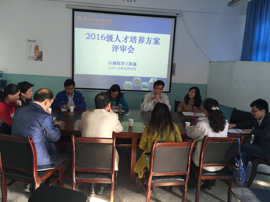 5月7日上午,石油化学工程系在西区石化楼会议室召开2016年级才培养方案审定会议。会议由石化系主任冯文成主持,石化系各专业带头人、教研室主任、教授参加了会议。