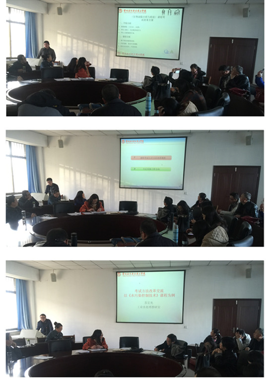 此次的交流研讨活动,在进行两次考试方法改革研讨及试题库试卷库建设成果的基础上,由各教研室主任选取本教研室一门核心课程,从课程的性质、内容、学习效果等方面入手进行现状分析,并针对目前采取的考试方法效果进行总结,发现问题,提出考试方法改革思路。
