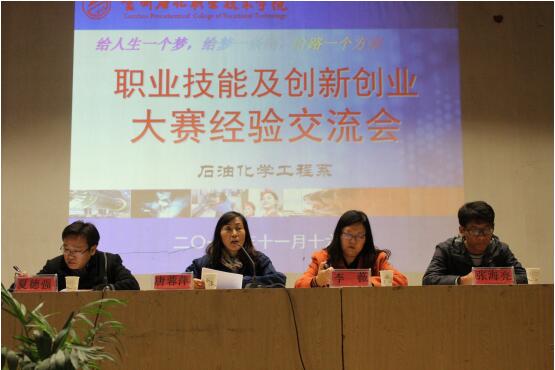 为了进一步加强学风建设,拓展教学手段和方法,切实提高化工检验技能,11月16日晚,石油化学工程系于西区礼堂组织开展了职业技能大赛及创新创业大赛经验交流会。本次交流会由系党总支副书记夏德强主持,系党总支副书记唐蓉萍、系副主任李薇、系团总支书记张海亮以及15、16级全体学生参加了会议。