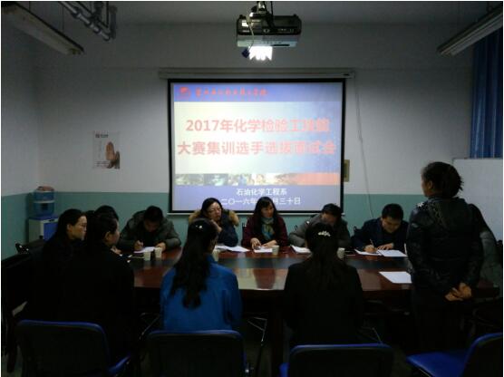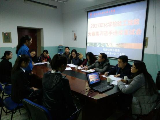 11月30日晚,石油化学工程系于化工楼309会议室开展了2017年检验工集训学生选手选拔面试工作,笔试成绩前42名的选手参加了本次面试。面试考官由石化系领导及相关老师担任。