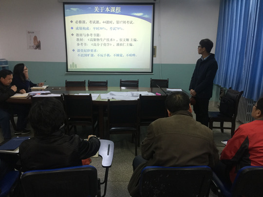 张海亮老师展示的是《高聚物生产技术》的 “第一堂课”,张老师对所授课程准备充分,教学内容安排得当,重点突出,逻辑严密,将课程教学内容与生产和生活实际相联系,语言生动,内容丰富,能够充分调动学生的学习积极性,为以后的教学打好基础。