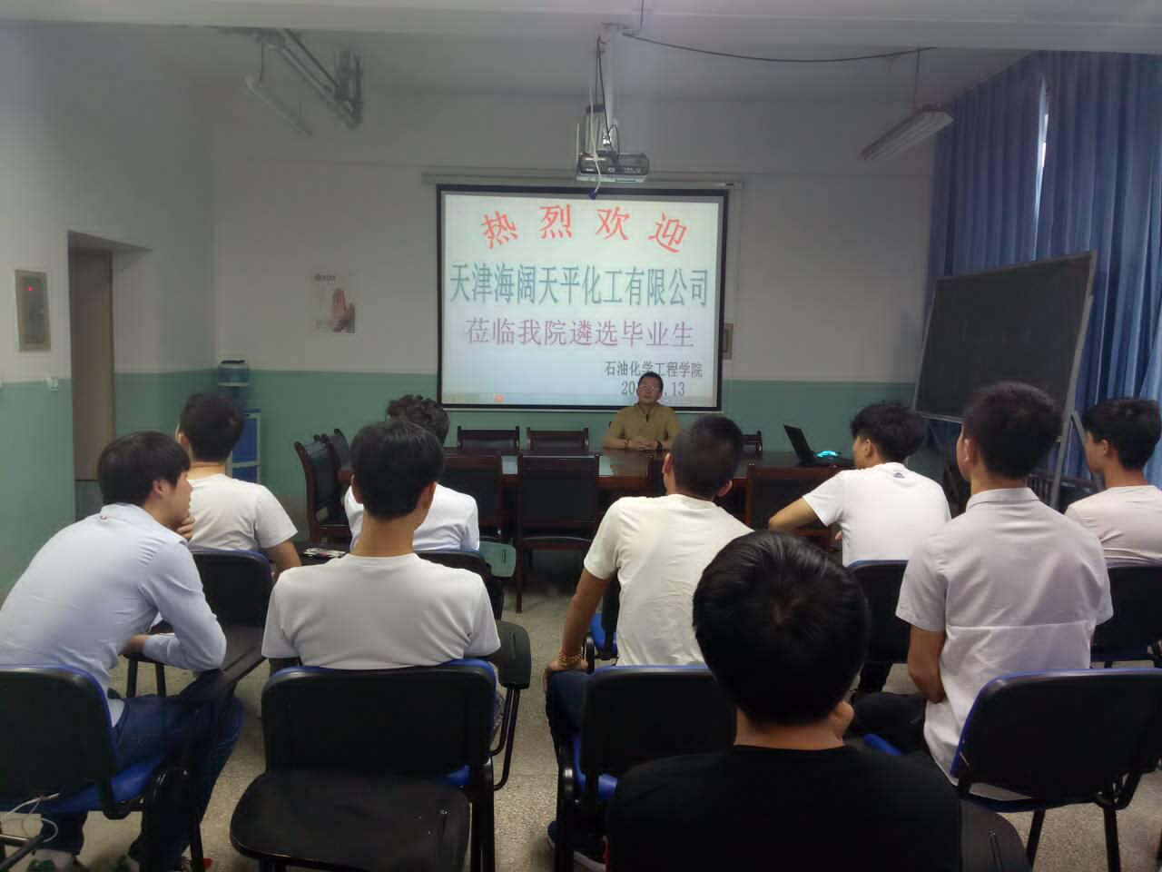 6月13日,天津海阔天平化工有限公司崔经理一行莅临77779193永利遴选毕业生,并于当日下午在化工楼309会议室召开了企业宣讲会,77779193永利辅导员于爱平及20多名学生参加了此次宣讲会。