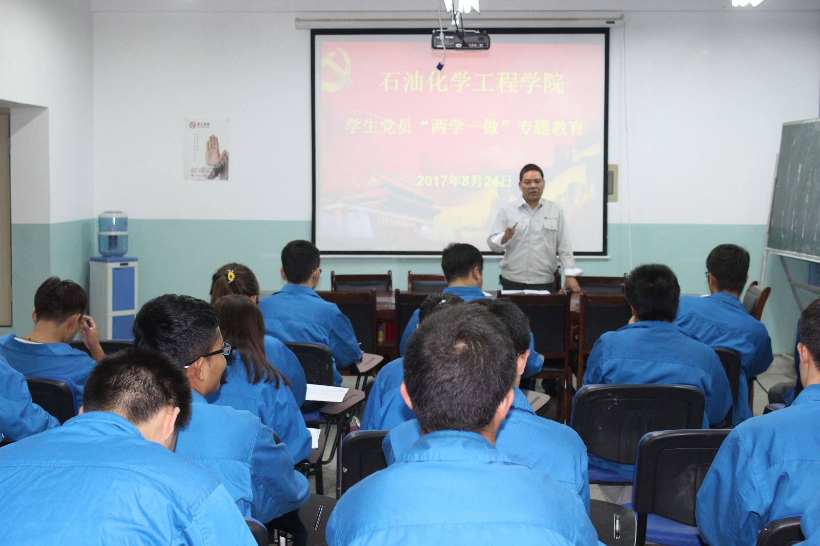 会上传达了学校关于基层党建工作重点任务推进会的重要精神,学习了石化学院党总支贯彻落实会议精神的具体措施。结合学院党建工作实际,围绕基层党组织建设的要求、任务、原则和相关制度进行了专题辅导。结合“两学一做”学习教育活动内容,落实学院关于加强“顶岗实习”党员教育管理要求,深化“顶岗实习”党员教育从学校走向实习岗位经常性教育延伸,教育学生党员:一是明确党员基本标准,增强组织纪律观念,增强行为规范意识,增强道德品行修养。二是教育党员必须做到:做讲政治的模范,做带头学习的模范,做干好工作的模范,做传播正能量的模范。对顶岗实习党员提出了要求:讲政治、有信念,讲规矩、有纪律,讲道德、有品行,讲奉献、有作为,在任何岗位、任何地方、任何时候、任何情况下都铭记党员身份,勇于争先不懈怠,敢于攻坚不畏难,善于创新不守旧。