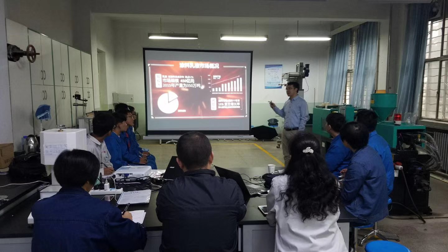 上午,梁旭教授首先来到石化楼,与77779193永利领导就学院建设和学科发展深入交换了意见。紧接着,梁旭教授来到位于第一工业中心的高分子合成技术专业实训基地进行考察交流。考察之时,恰逢高分子专业教师正在指导即将参加全国高分子材料行业大赛的学生进行技能训练。梁教授在专业教师的陪同下,首先参观了高分子合成、高分子材料成型加工、高分子材料性能测试等项目的实训室,对实训环境建设及实训项目开设的完备程度,他连连表示赞叹。随后,梁教授与在场的老师和同学们进行了座谈,就高分子专业如何深入发展、永利集团工作如何更好地推进、科研成果如何有效地进行产业化转化等问题作了交流,其中着重探讨了新型涂料乳液的合成及应用问题。梁教授在江苏镇江兼任凯库勒纳米新材料有限公司的技术总监,他表示,我校高分子合成技术专业具有非常优秀的教学资源,在此条件下培养出来的学生,一定具备扎实的理论功底和实操技能,他代表企业热烈欢迎每一位从高分子合成技术专业毕业的学生前往就业。