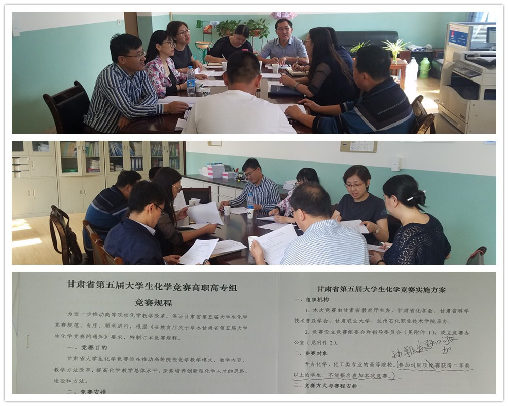 甘肃省第五届大学生化学竞赛将于10月中旬由甘肃农业大学(本科院校组)和我校(高职高专院校组)共同承办,大赛临近,现已进入各项事宜论证确定阶段。