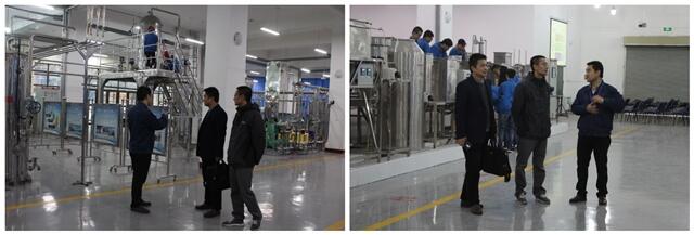 接着郑晓明陪同两位嘉宾深入我校第四工业中心和第一工业中心的化工类专业实训基地,详细了解了学校理实一体化实训基地建设情况,并详细介绍了学校企业化办学、工厂化教学的职业教育模式和理念。
