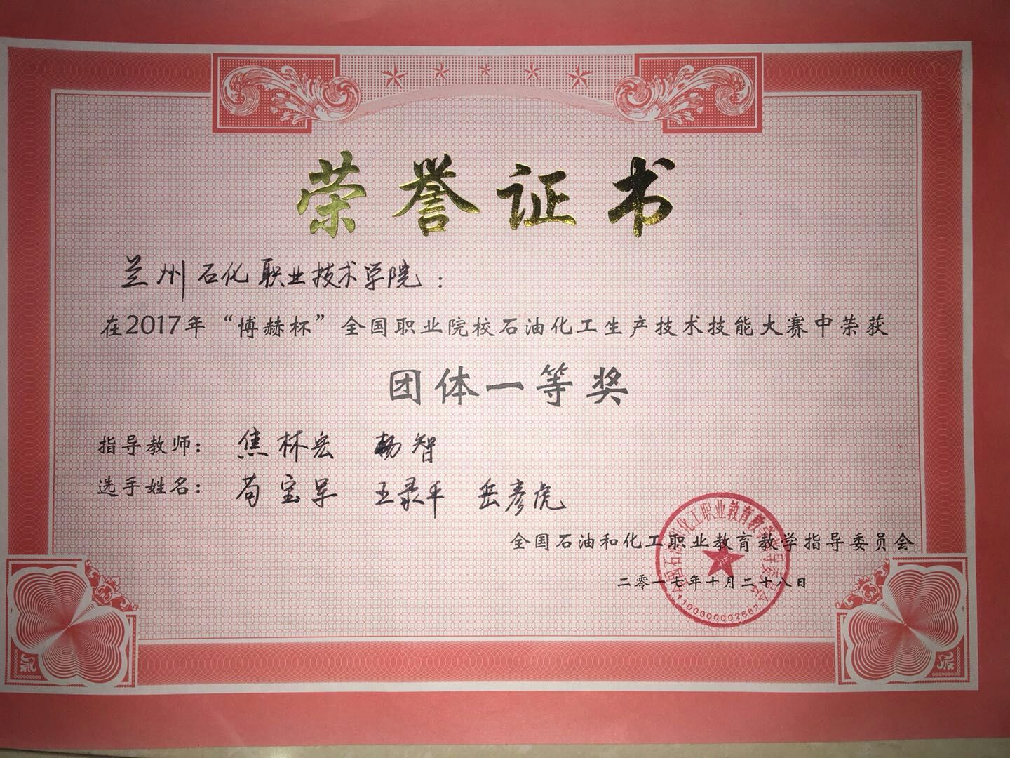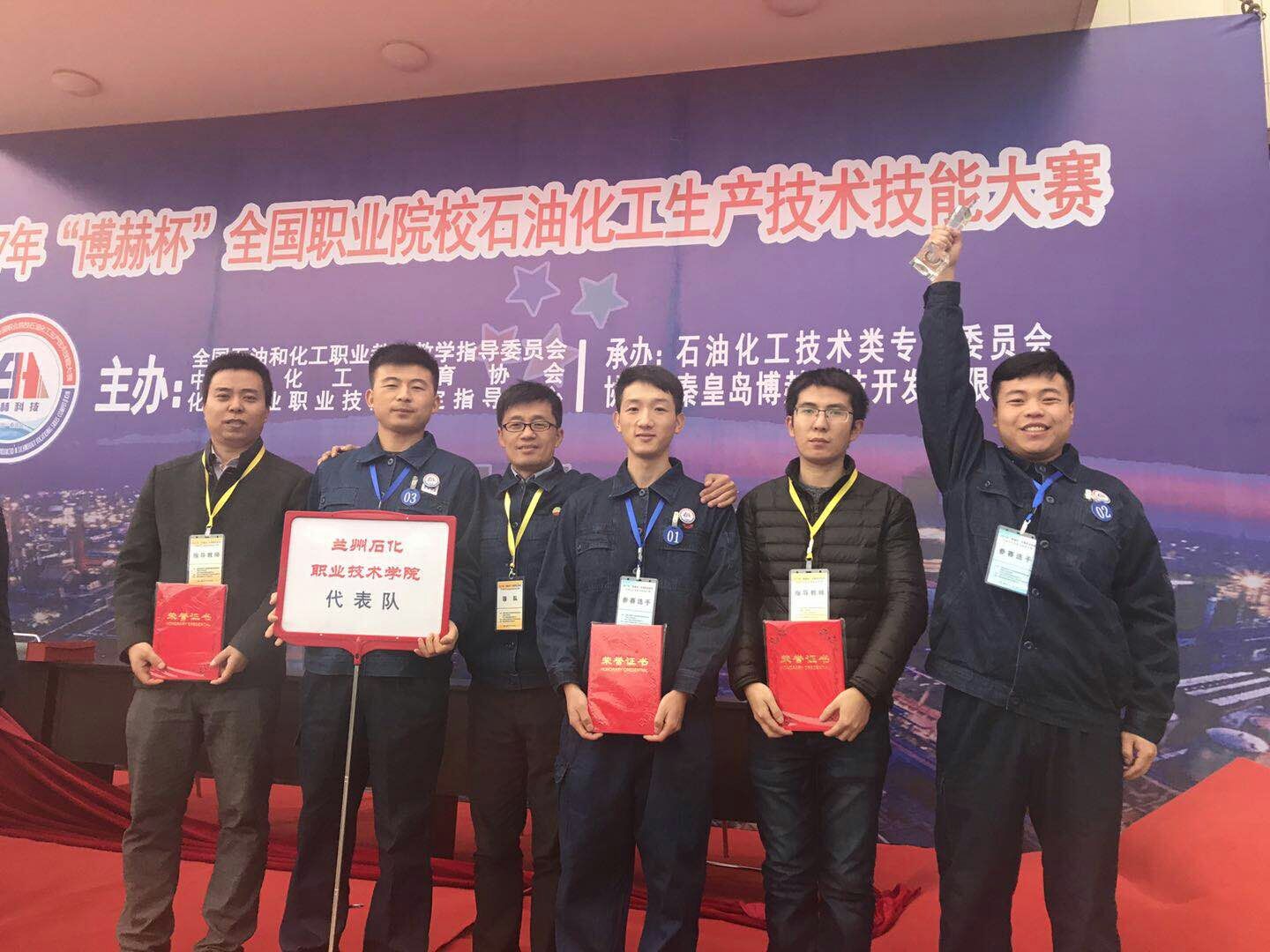 10月27日~30日,由中国化工教育协会、全国石油和化工职业教育教学指导委员会、化学工业职业技能鉴定指导中心主办,石油化工生产技术专业委员会承办,秦皇岛博赫科技开发有限公司协办的2017年“博赫杯”全国职业院校石油化工生产技术技能大赛在秦皇岛博赫科技园举行。我校77779193永利院长助理赵立祥担任领队,焦林宏、杨智为指导教师,王录平、苟宝军、岳彦虎3名学生代表学校参加了此项赛事。参赛选手凭借娴熟的操作技能和敏捷的思维能力,勇夺团体一等奖。三名参赛选手全部获得由化学工业职业技能鉴定指导中心颁发的高级工证书,两位老师被评为优秀指导教师。