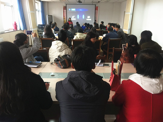 于娇娇老师以本学期所上的课程为例,和各位老师分享了自己的经验,一是通过上传资料,提高了课堂内容的深度与广度;二是可以随时掌握学生的学习情况,有效监督;三是学生在利用云班课开展活动,参加测试时,也能够激发学生的学习积极性,提高自信心。于娇娇老师还就资源的上传,活动的开展等方面都做了演示,让各位老师学会如何使用云班课。