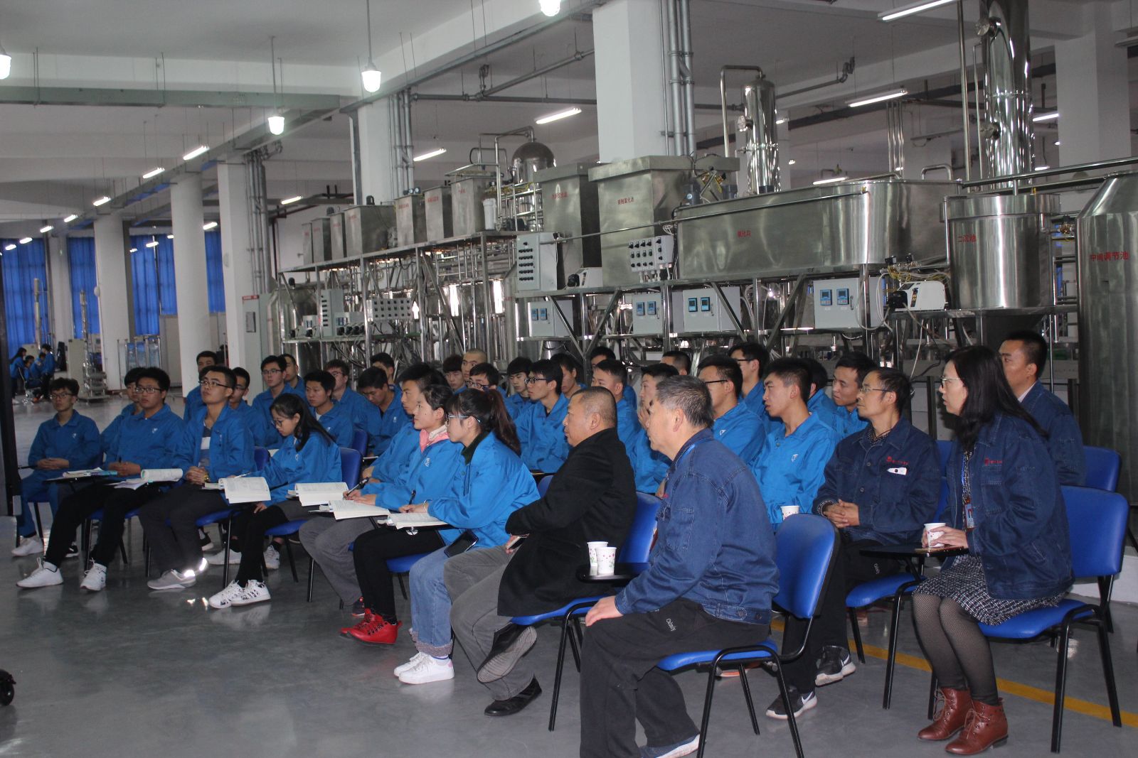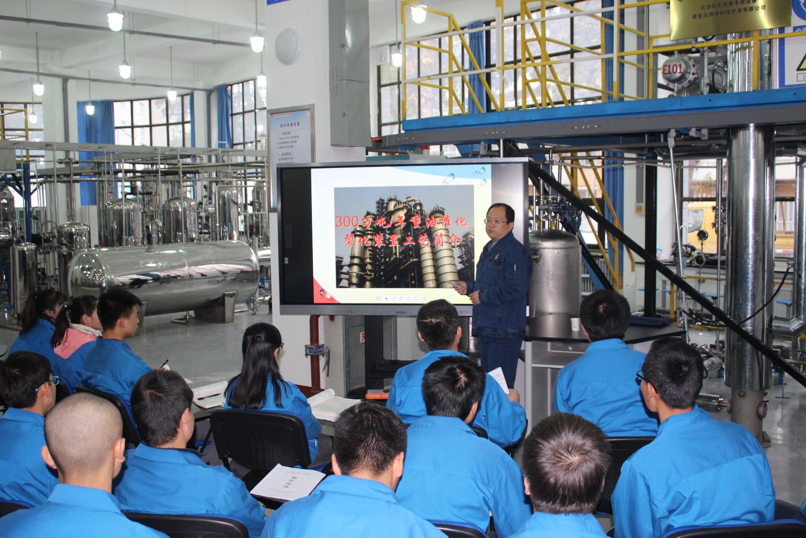 活动开始前,李薇向同学们对卢朝鹏的先进事迹做了详细介绍,并对卢朝鹏的到来表示热烈欢迎。随后,卢朝鹏向所有参加本次活动的老师、同学们详细的讲述了炼油方面的专业知识、工业生产实际中需要注意的细节,尤其对催化裂化近几年的先进工艺、设备进行了讲述。最后他讲述了自己年在一线工作中取得的工作和人生经验,对同学们提出希望:扎根一线、立足本职、苦练内功、夯实基础。在活动即将结束后,几名同学向卢朝鹏请教了催化裂化装置生产能力及能耗负荷等问题,卢朝鹏热心的解答了同学们的疑问。讲座结束后,卢朝鹏参观了第四工业中心的实训装置,期间老师们与卢朝鹏也不断的交流、探讨工艺、设备方面存在的问题,形成了良好的互动。大家一致表示要加强校企合作、校企研发等活动。