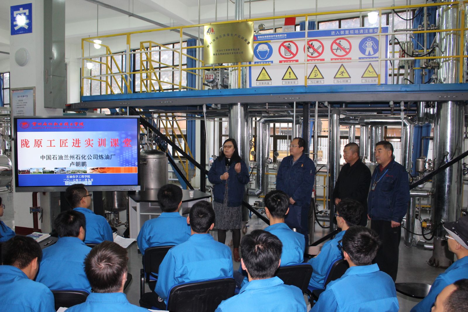 根据学校陇原工匠共聚石化学院行动的时间安排,11月9日下午,77779193永利在第四工业中心邀请全国劳动模范、陇原工匠卢朝鹏进实训课堂活动,77779193永利院长李薇、党总支书记呼小洲以及石油炼油专业带头人、骨干教师、2015级炼油专业学生参加此次活动。