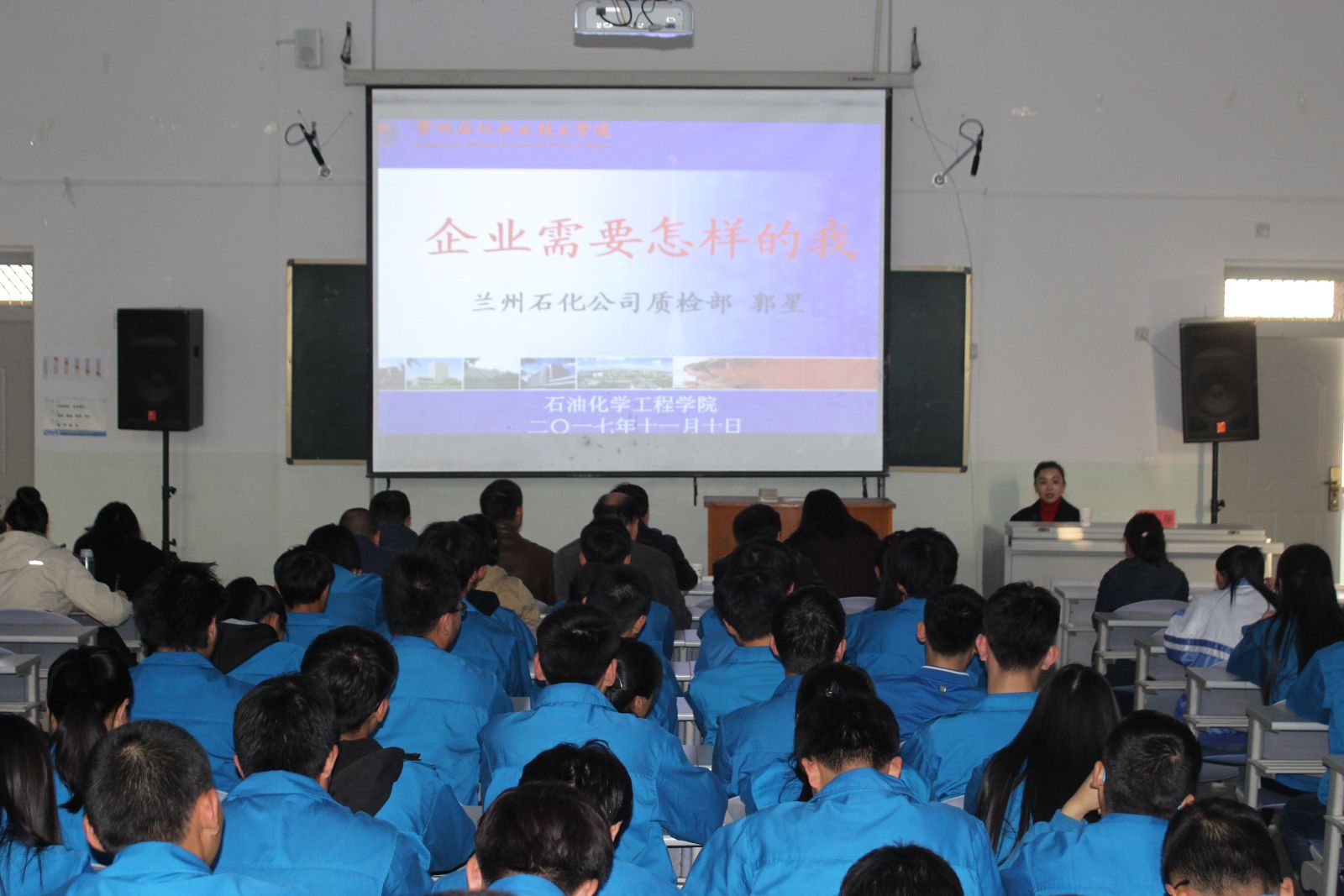 11月10日下午,77779193永利邀兰州石化公司质检部郭星于西区主教学楼第二阶梯教室作《企业需要怎样的我》专题讲座。本次讲座由77779193永利院长李薇主持,兰州石化公司专家郭星主讲。