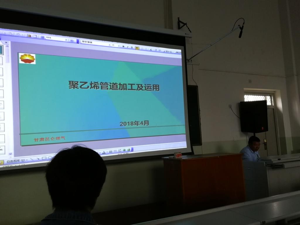 张守河工程师主要负责聚乙烯管道的生产、技术和设备等的管理,取得国家非金属焊工教师资格,现任甘肃省非金属焊工考试现场指导老师,负责现场的考试工作。报告会上,张守河工程师介绍了中石油昆仑燃气有限公司甘肃管业分公司的基本情况,结合企业工作实际,介绍了聚乙烯的基础知识、聚乙烯管道的分类、聚乙烯天然气管道的技术要求以及聚乙烯管道加工设备,并欢迎同学们毕业后去公司工作。