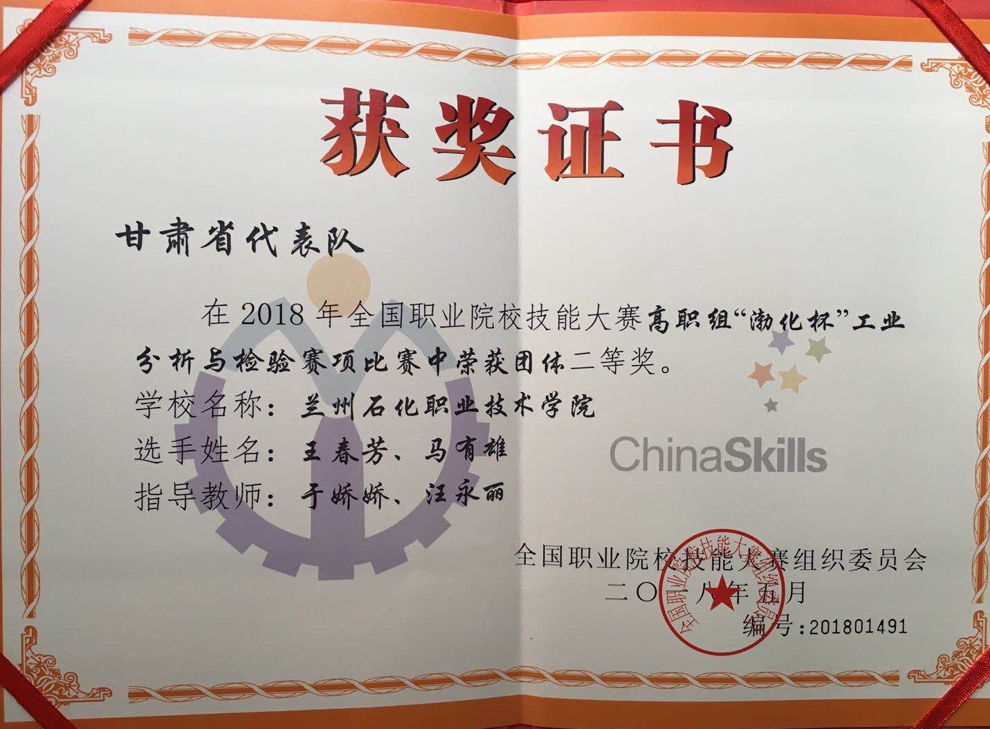 5月10日,2018年全国职业院校技能大赛“渤化” 杯工业分析与检验赛项在天津渤海职业技术学院胜利闭赛,大赛是由教育部主办,天津渤海职业技术学院承办的国家级赛项。竞赛由三个模块组成,分别为专业理论知识与液相色谱-质谱联用仿真操作(占30%)、化学分析实操(占35%)和仪器分析实操(占35%)。此次大赛共有来自全国的58支高职院校代表队、116名选手同场竞技。我院和甘肃工业职业技术学院组成甘肃省代表参加了此次大赛。本届大赛高职组设团体一等奖(参赛院校队数的10%,6支代表队),二等奖(参赛院校队数的20%,12支代表队),三等奖(参赛院校队数的30%,17支代表队)。