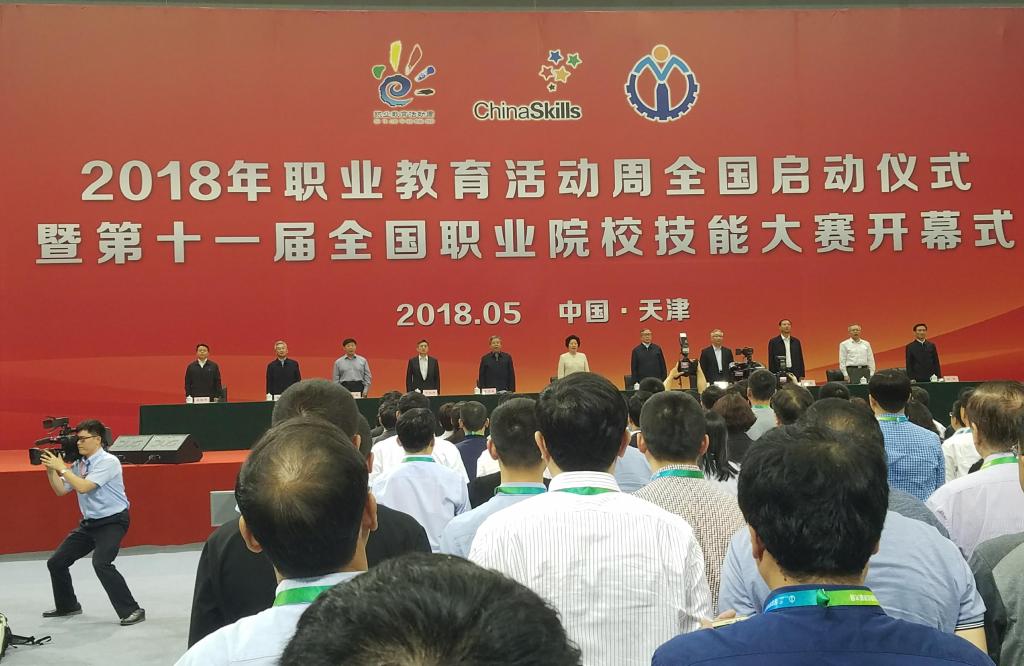 5月6日,2018年职业教育活动周全国启动仪式暨第十一届全国职业院校技能大赛开幕式在天津海河教育园区体育馆举行。中共中央政治局委员、国务院副总理孙春兰发表讲话并宣布2018年全国职业教育活动周启动、第十一届全国职业院校技能大赛开幕,中共中央政治局委员、天津市委书记李鸿忠出席活动,活动由教育部党组书记、部长陈宝生主持,天津市委副书记、市长张国清致辞。来自教育部、中宣部、中央网信办、人力资源和社会保障部、农业农村部、共青团中央、中华职教社等单位的负责同志,以及世界各地前来观摩和参加比赛的嘉宾、职业院校师生代表共计2000余人参加了开幕式。甘肃省代表团由教育厅副厅长王光亚同志带队、我校校长高溥教授作为副团长应邀参加了启动仪式及开幕式。