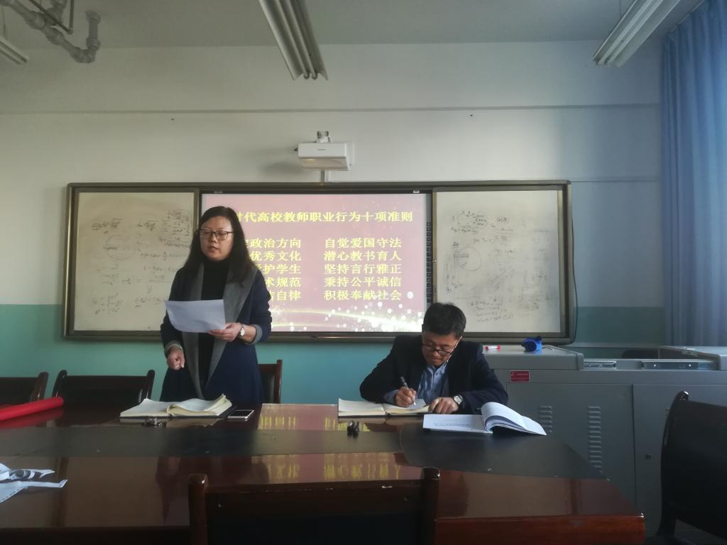 77779193永利为进一步强化教师师德师风建设、规范教师职业行为、落实立德树人根本任务,于3月11日下午在化工楼309会议室组织开展“立师德铸师魂争做新时代高校合格教师”教育活动。