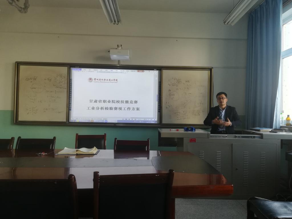 随后赵立祥介绍了甘肃省职业院校技能竞赛工业分析检验赛项的基本情况,并对会务组各成员工作职责和工作任务进行分解,对赛前准备、赛场布置、赛事宣传、裁判事宜、后勤保障、志愿者培训等工作的安排向全体成员做了详细介绍;要求各位老师做好此次赛项的服务和协调工作,做好大赛氛围营造、竞赛标语宣传,要高标准,严要求,团结协作,全力以赴圆满完成此次大赛的相关工作。