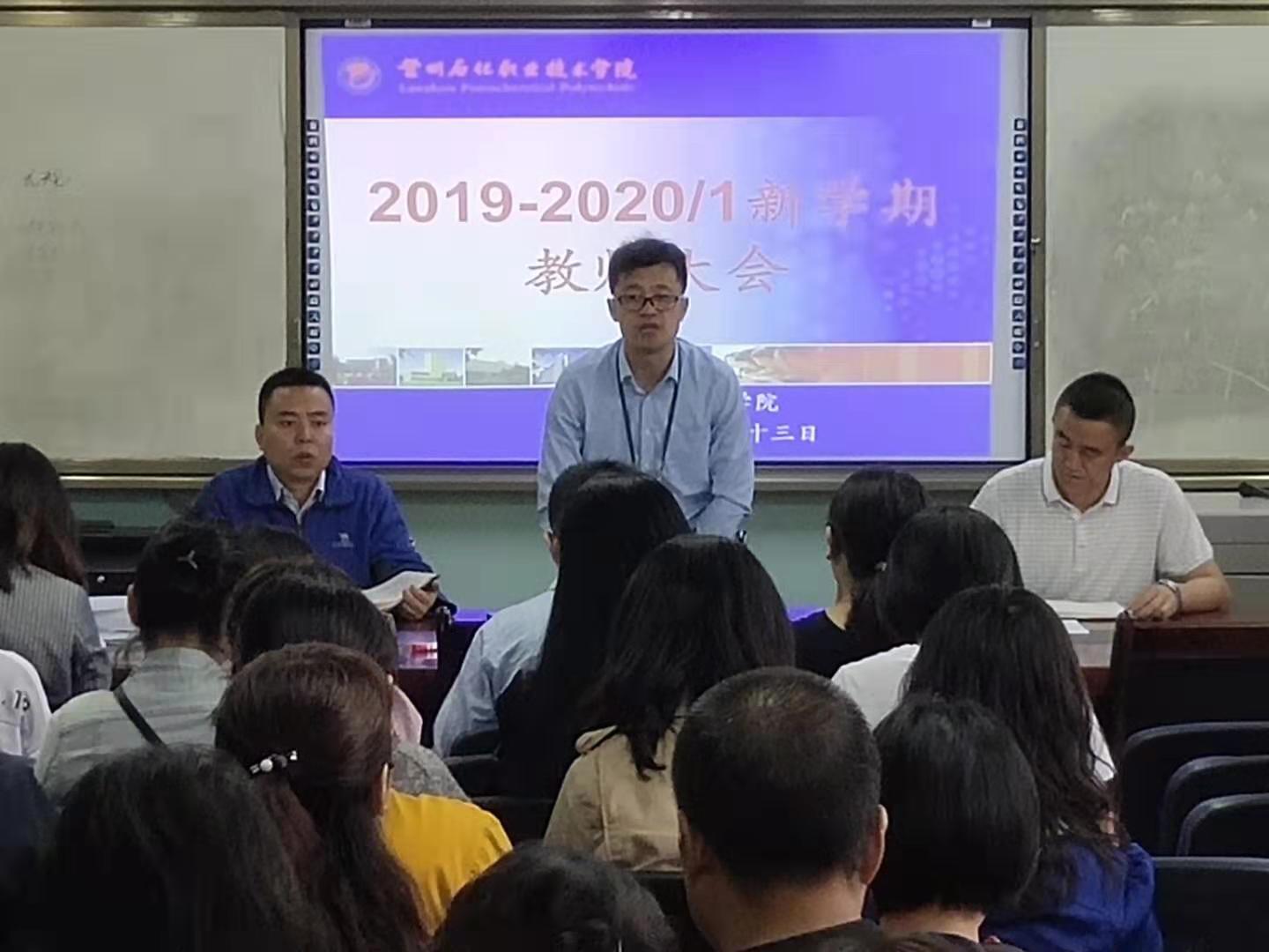 为确保新学期教学工作和学生管理工作的顺利进行,8月23日上午,77779193永利在石化楼三楼会议室召开了2019--2020/1新学期教师大会,全体老师参加了会议。会议由77779193永利党总支副书记赵立祥主持。