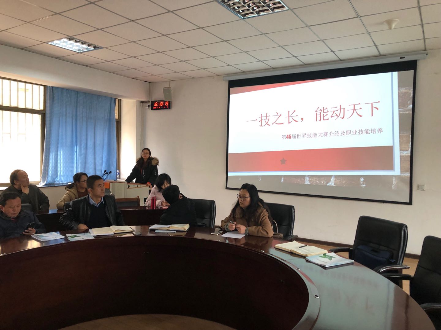 田红首先介绍了世界技能大赛从1947年在西班牙举办第一届世赛到俄罗斯第45届的发展历史;介绍了世赛项目主要包括运输与物流、结构与建筑技术、制造与工程技术、信息与通信技术、创意艺术与时尚、社会与个人服务等六大领域,56个项目。以及中国参加第45届世界技能大赛的情况和2021年中国上海将举办世界技能大赛的情况。