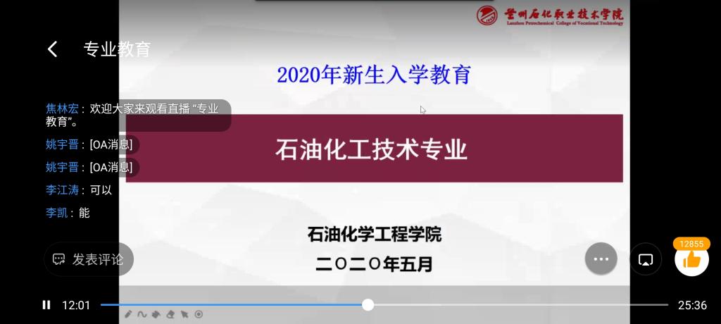 随后石油化工教研室主任焦林宏对石油化工技术专业概况、专业课程设置以及就业前景等方面进行了介绍。