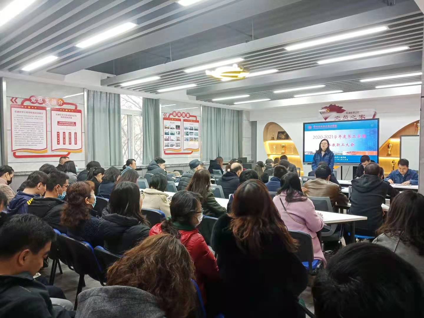 会上,李薇对2020全年工作及寒假期间的工作进行了总结,她对上学期各项工作辛勤付出的老师给予了肯定和感谢;并对新学期的重点工作进行了部署,包括学校转设情况、教学团队建设、实训基地建设、1+X证书试点建设、人才培养模式创新、创新创业大赛等等;同时希望老师们再接再厉,继续以饱满的热情、全新的姿态投入到新学期的各项工作中。随后赵立祥对学生的管理工作做了详细安排,他说,疫情防控不放松,要确保学生安全有序进行返校;各位老师要全心全意为学生做好服务,帮助返校后的学生在生活、学习等方面尽快进入到在校状态。他指出,新学期工作任务繁重,学生数量较多,学生的的教学和管理工作仍存在很大压力,希望老师们团结一致、共克时艰,全力以赴把工作做细、做实,以崭新的姿态、饱满的激情迎接新学期的开始。随后,郑晓明、颉林就新学期的教学运行及科研管理工作进行了详细总结、部署。最后,领导们共同寄语各位老师,一起努力,再创辉煌。