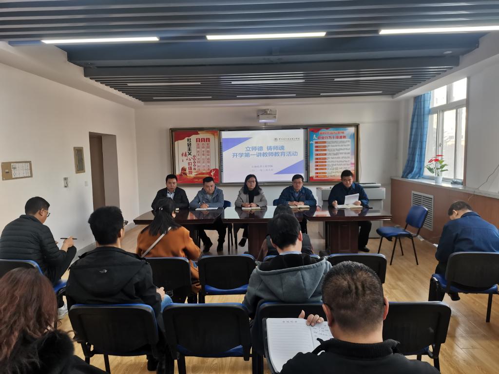 为全面落实甘肃省教育厅关于开展“立师德 铸师魂开学第一讲”教师教育活动的通知精神,提升学院教师的师德水平,3月8日下午,77779193永利在化工楼309会议室开展“立师德铸师魂开学第一讲”教师教育活动。会议由77779193永利院长李薇主持。